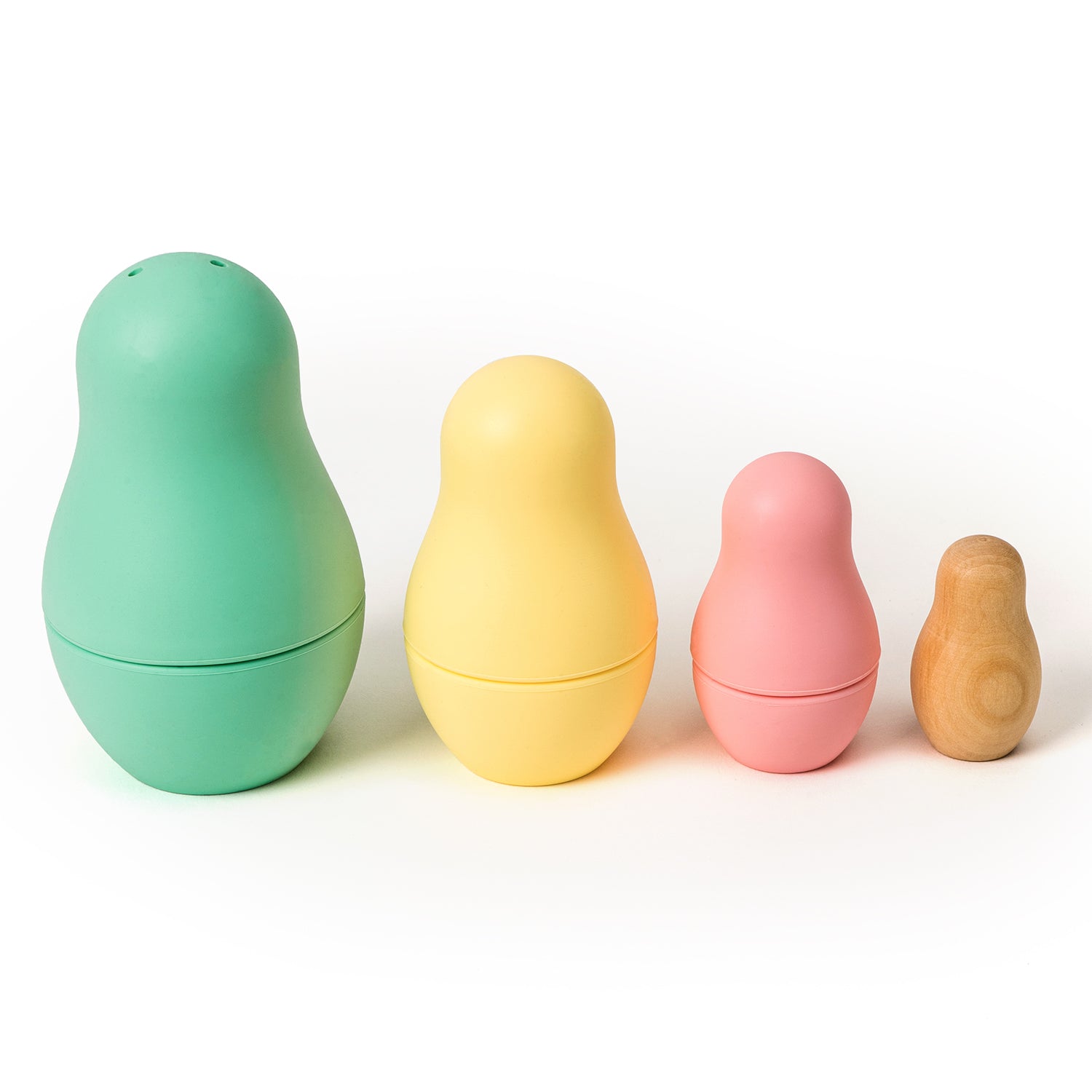 MatryoshkasCes figurines vous rappellent-elles quelque chose ? Les matryoshkas sont des poupées russes traditionnelles qui s’imbriquent les unes dans les autres. Pour les petits, elles sont particulièrement intéressantes car ils peuvent ainsi apprendre à distinguer les tailles, et jouer à les emboîter. Grâce à ce jeu, vous favoriserez la motricité fine de votre enfant, la coordination œil-main, la force et le mouvement d'ouverture et de fermeture, tout en favorisant la concentration. Comme elles sont en silicone, votre enfant peut même les emporter dans son bain !