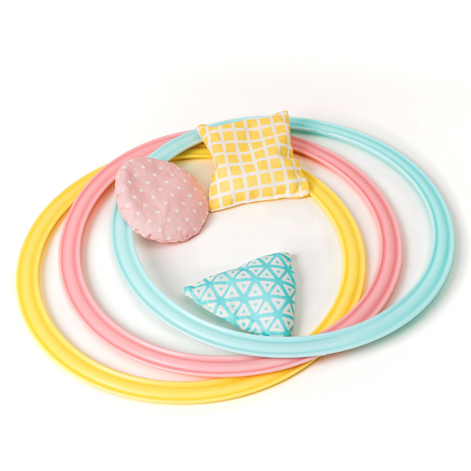 Cerceaux & Petits sacsÀ ce stade, les enfants sont pleins d'énergie et tout ce qui implique une activité physique est très bon pour eux. Avec ce jeu, votre enfant pourra combiner des activités plus physiques, comme sauter et courir, avec des activités plus calmes et plus précises comme lancer les sacs dans les cerceaux.