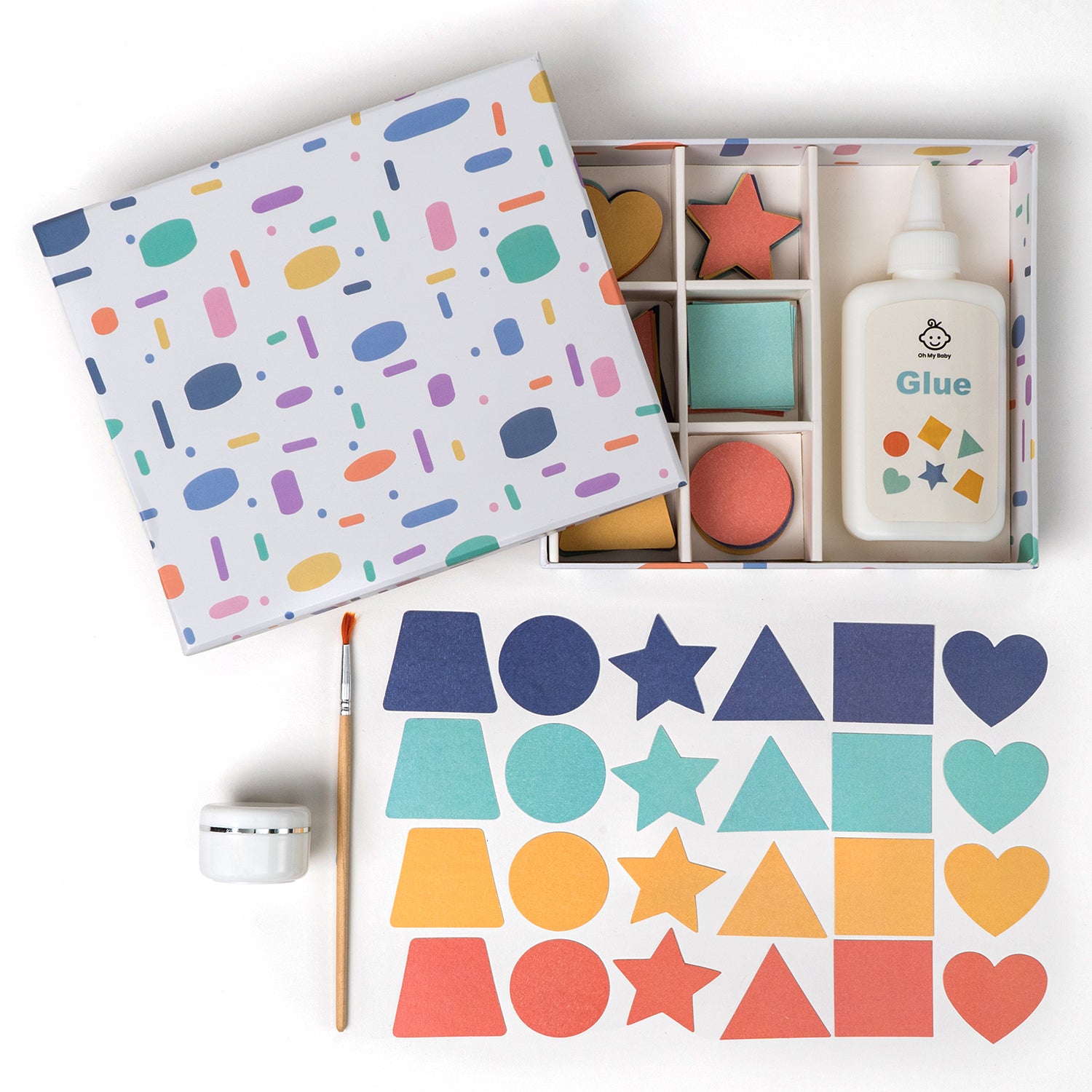 Jeu de bricolageLe bricolage est l'une des activités que les enfants apprécient le plus, car il leur permet de laisser libre cours à leur imagination, et c'est l'occasion de s’étaler un peu. Avec ce set de colle et de papiers, votre petit pourra s'amuser à faire de merveilleuses créations, mais avec un minimum de désordre. Grâce au pinceau, il appliquera la colle facilement, et de façon plus précise, ce qui lui évitera d’en mettre partout.