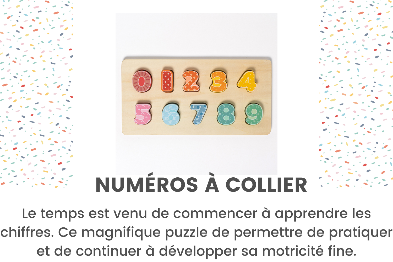 Puzzle avec chiffresLe temps est venu de commencer à apprendre les chiffres. Ce magnifique puzzle remplira cette fonction. En plus il permettra, à votre petit de pratiquer et de continuer à développer sa motricité fine.